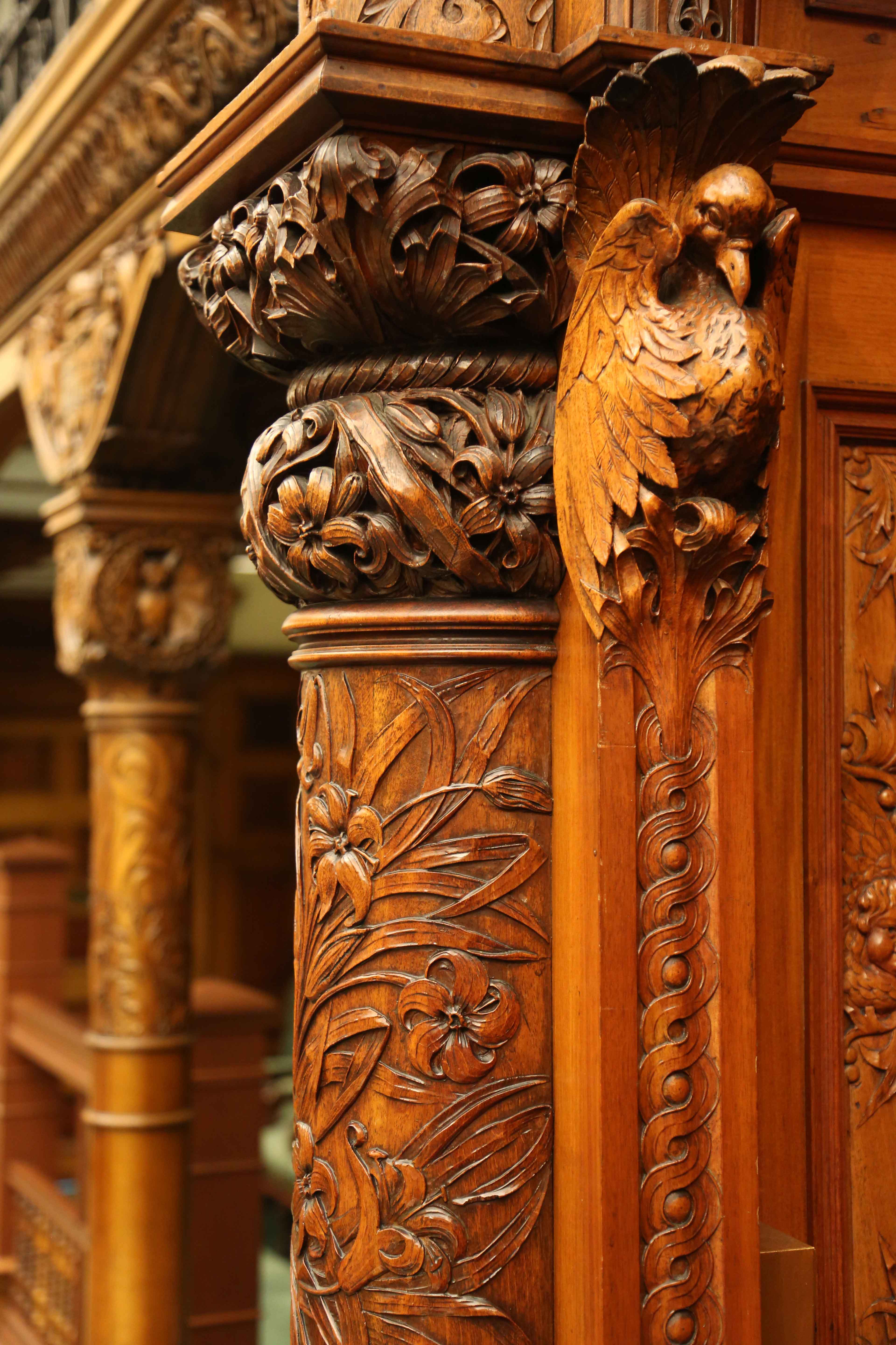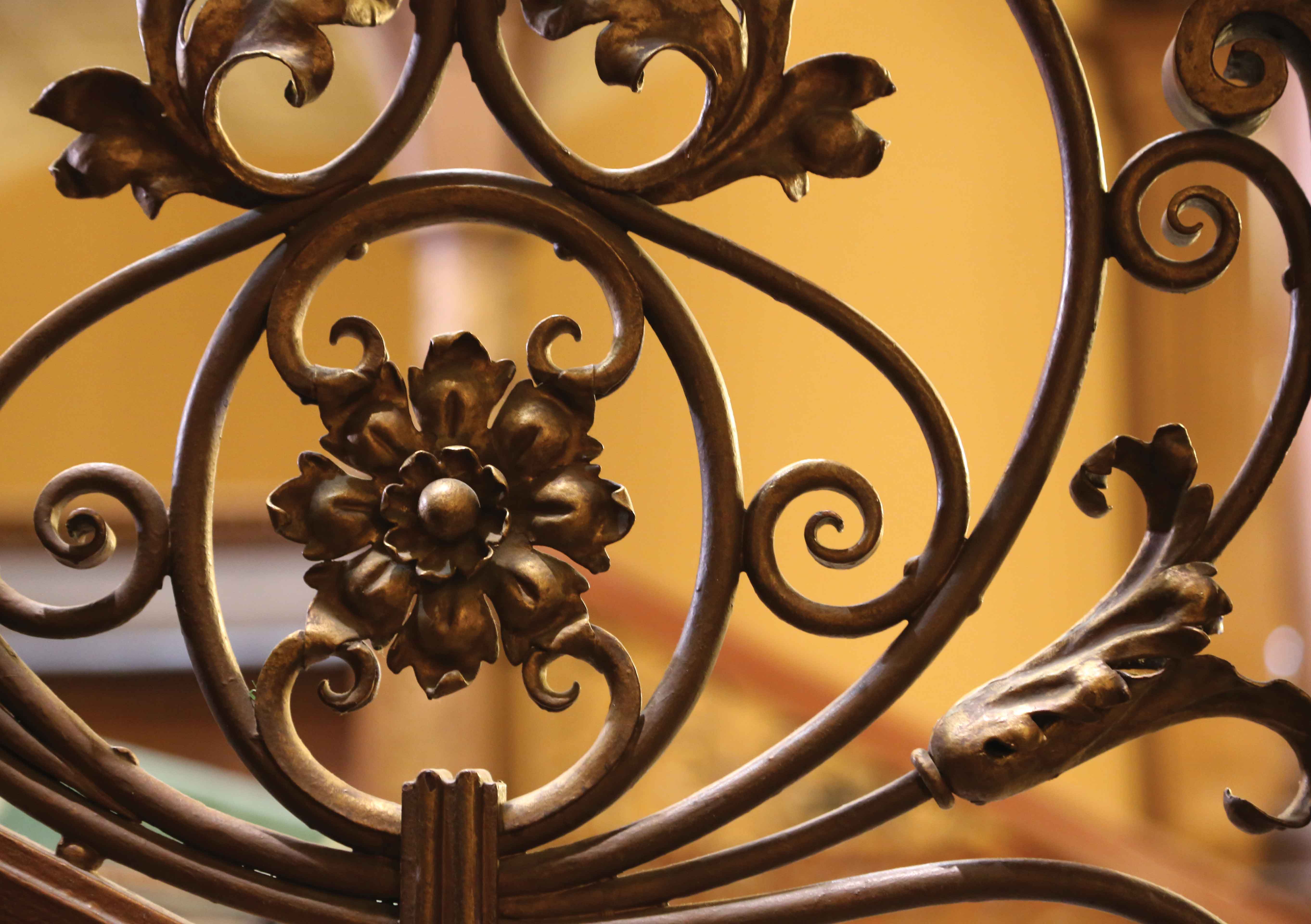 Close-up of ornate filigree details of the ironwork on the Grand staircase