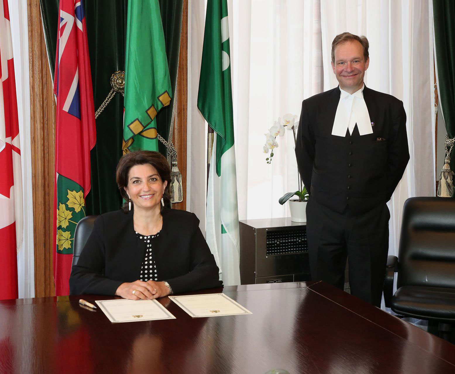 2020 - Patricia Kosseim, Privacy and Integrity Commissioner, with the Honourable Ted Arnott, Speaker of the Legislative Assembly of Ontario