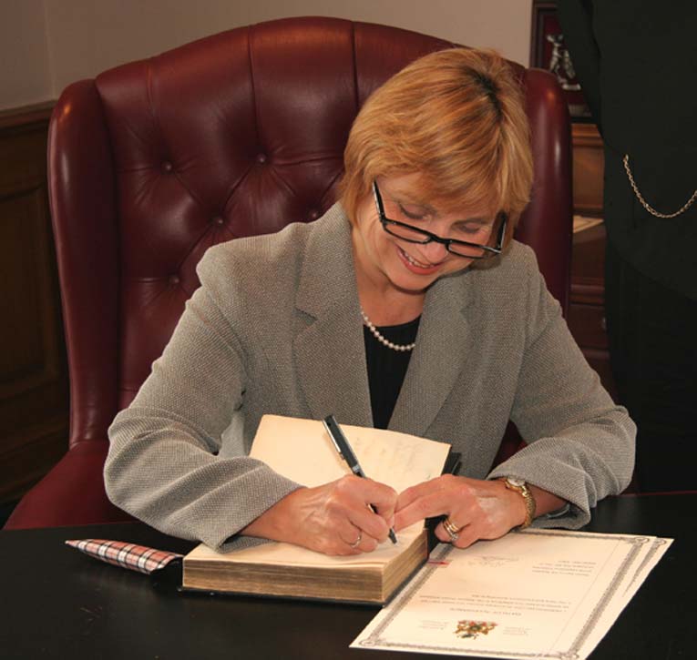 Deborah Deller (1956- ) being sworn in as Clerk of the Legislative Assembly of Ontario, 2007.