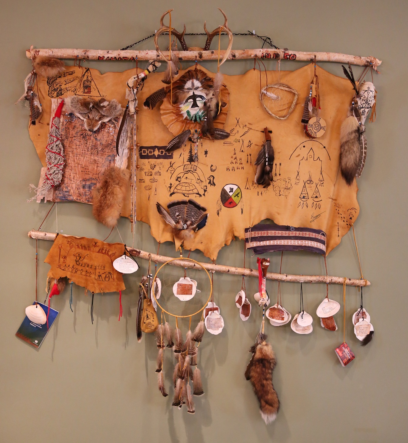 I Had a Dream is a multimedia mural inspired by a dream – Russell awoke early one morning to a messenger from the Creator pushing him to tell the story of Indigenous history through his art. I Had a Dream tells the story of the Haudenosaunee people from creation, to colonization and slavery, to treaties signed under duress, residential schools, and the loss of traditional lifestyle on reserves. It finishes on a hopeful note, with the Chiefs and the Canadian government coming to a peaceful reconciliation and joining forces as equal powers to lead the land together.