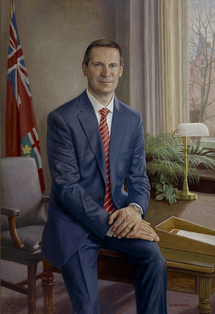 The collection of Ontario Premier portraits began with that of the province’s longest-serving Premier, Sir Oliver Mowat, who held office for 24 years (1872 to 1896). His portrait was unveiled in the Legislative Chamber after the Speech from the Throne on April 4, 1893 – the official opening day of the Queen’s Park Legislative Building. A few years later, the portrait of Mowat's predecessor, the Honourable Edward Blake (1871-1872), was added, establishing the tradition of commemorating each retiring Premier with an official portrait. Today, these works line the hallways of the Legislative Assembly of Ontario and can be viewed in the East Wing of the second floor.