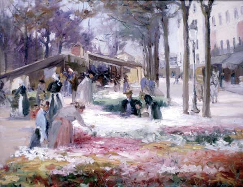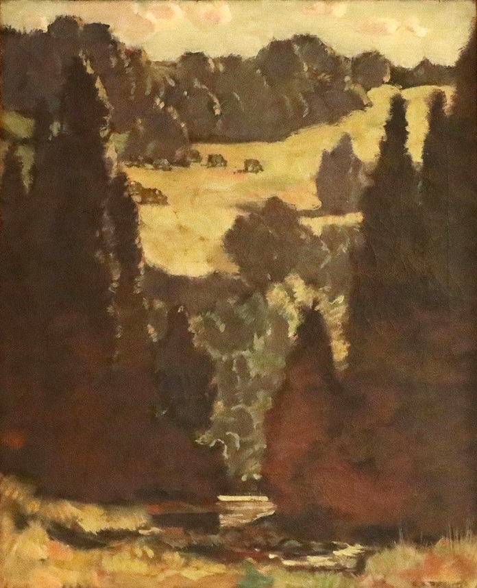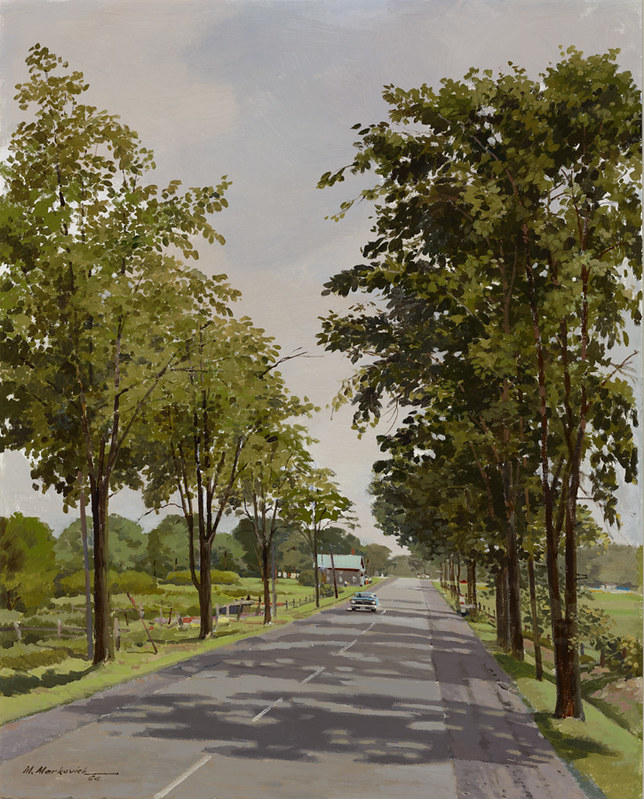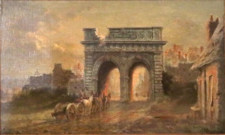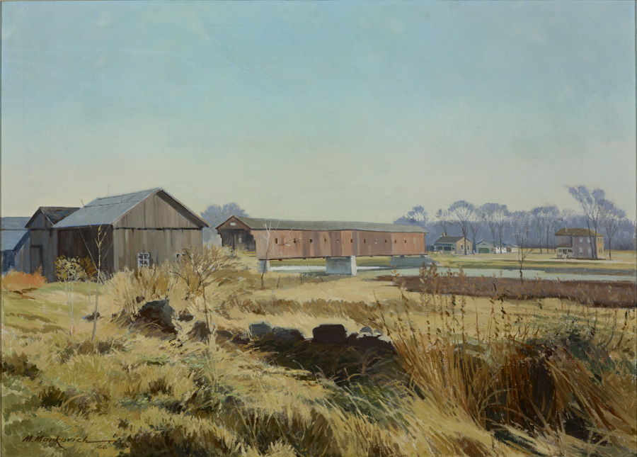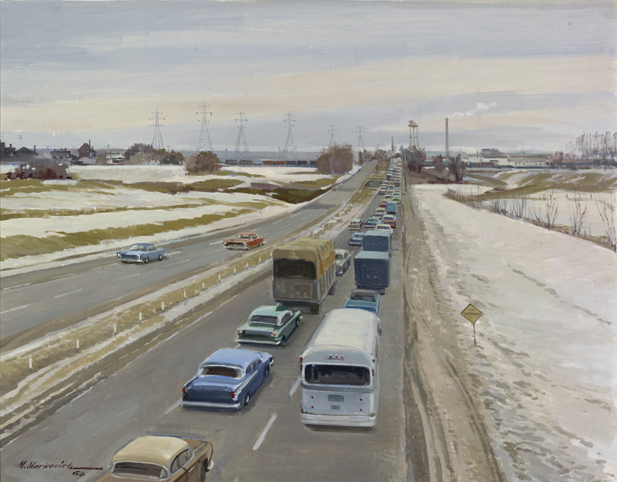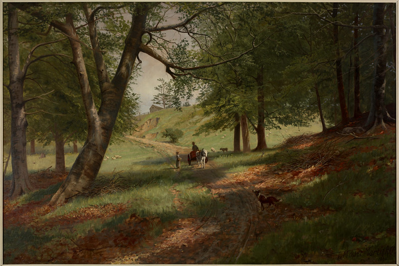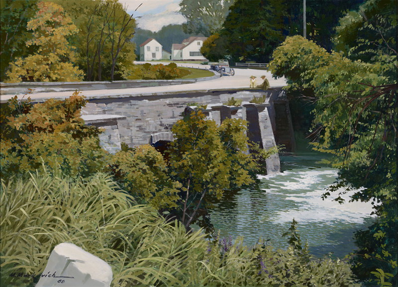 Other works were created by Ontario artists George Agnew Reid and C.W. Jefferys. Reid was a prolific artist who donated 459 pieces to the Ontario government. His pieces often depict rural life and landscapes. Jefferys was a landscape painter and muralist, and is best known for his historical illustrations, which were primarily created for school history textbooks beginning in the 1920s.