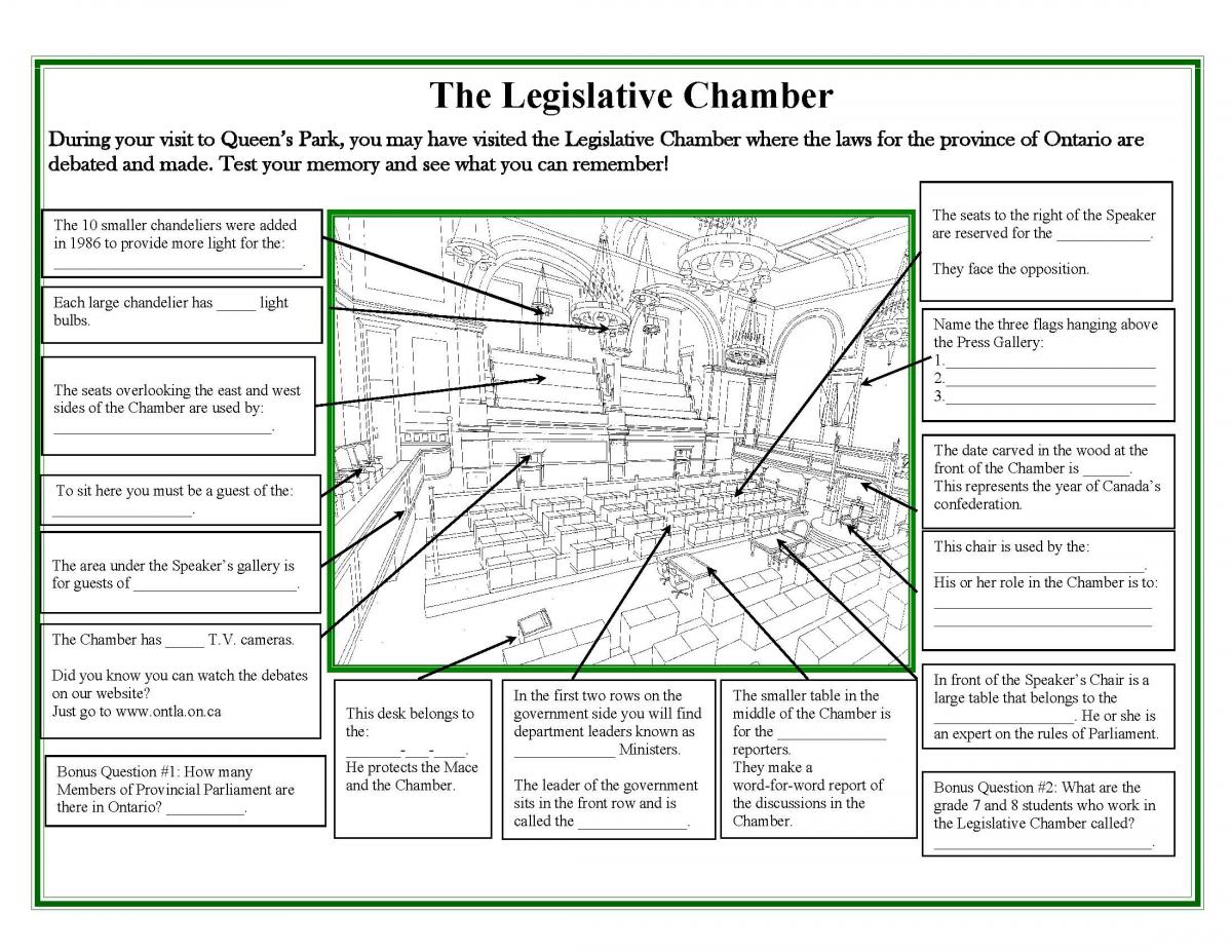•Following the presentations, if you have access to the internet or a smart board, you can take a virtual tour of the Legislative Chamber to show students the locations of the positions. Otherwise, students can take a virtual tour as part of a home assignment, in the library or during computer class.