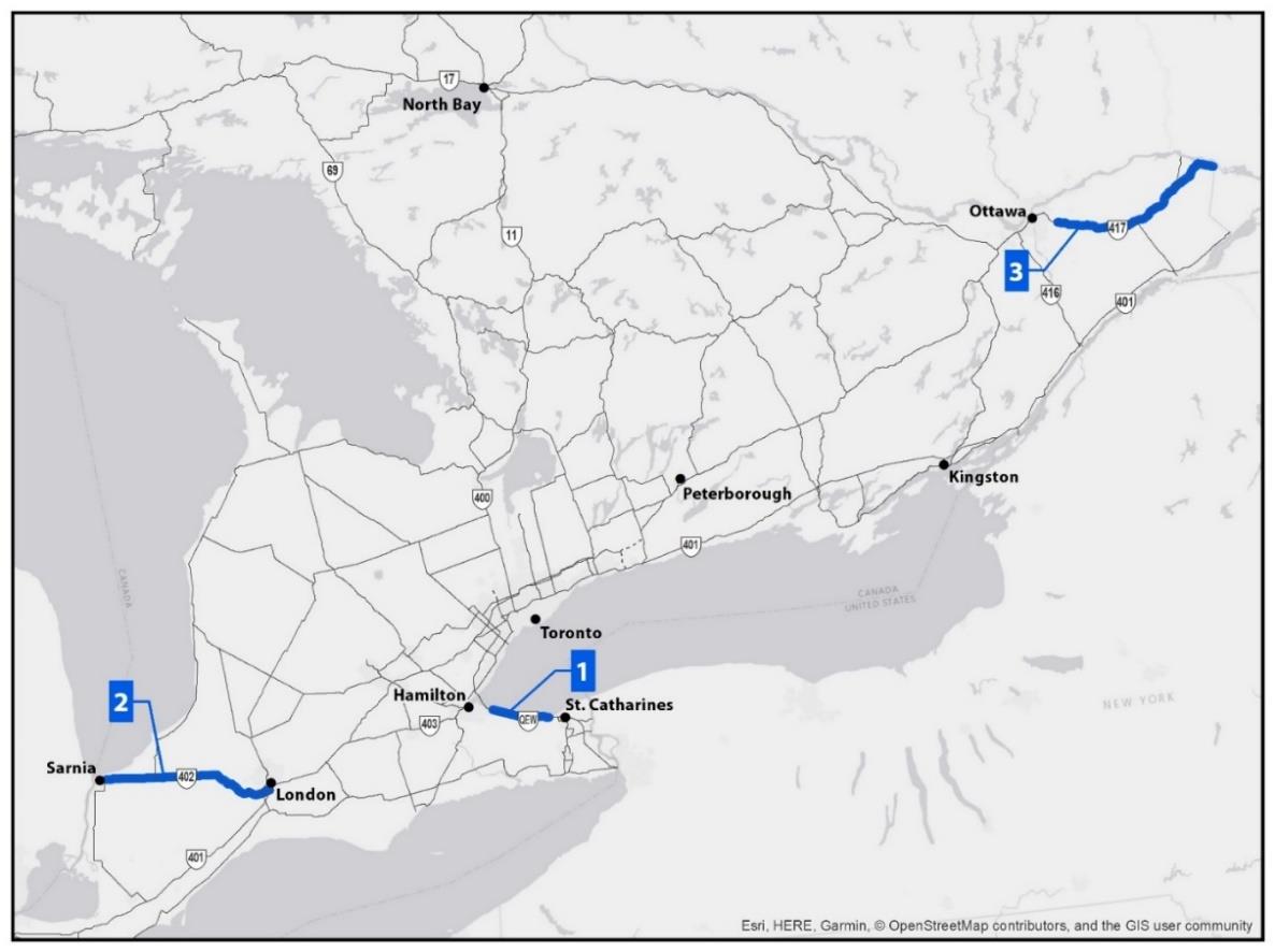 Le gouvernement de l’Ontario prélève des péages sur trois autoroutes depuis 2017 pour couvrir les coûts liés à l’élargissement des routes. Les revenus générés sur des routes provinciales (la 407 Est, la 412 et la 418) sont transmis au Trésor provincial, qui les affecte aux priorités du gouvernement. Actuellement, il n’y a plus de péage sur les autoroutes 412 et 418.