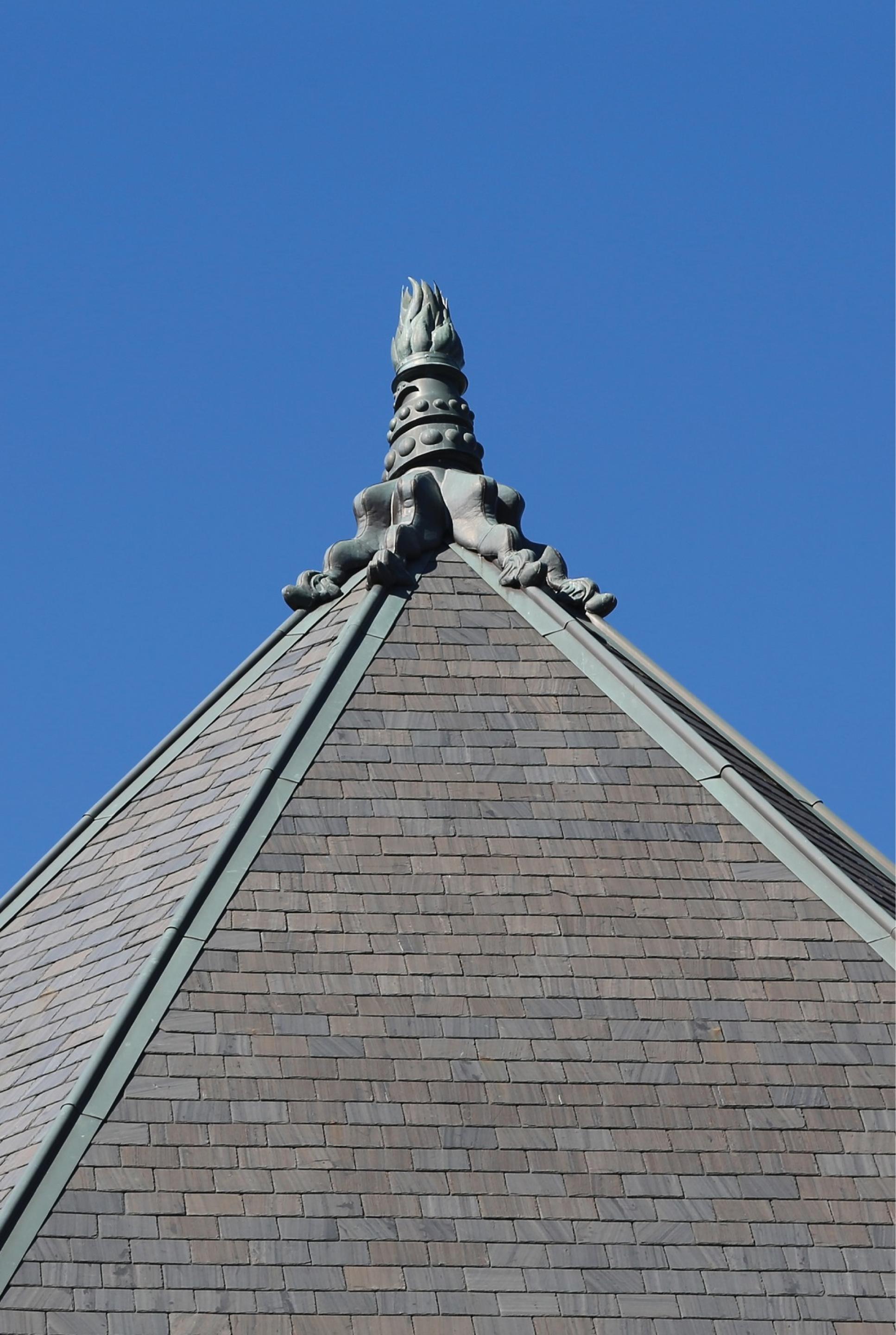 Ce faiteau décoratif en cuivre sur le toit ressemble à une torche enflammée. Bien qu'il fasse partie de la conception originale du bâtiment, il s'agit d'un faiteau de remplacement recréé et installé en 1993. L’original a été endommagé par les conditions météorologiques.