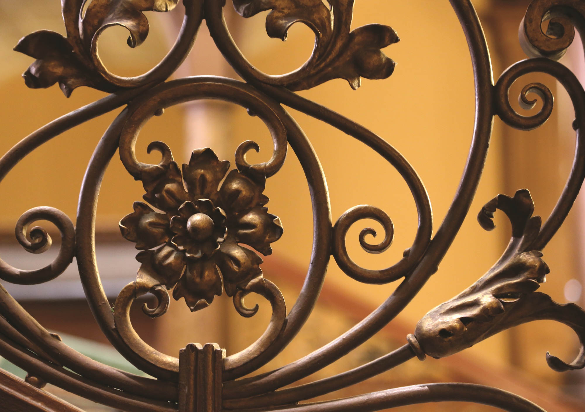 Ferronnerie décorative sur le grand escalier, édifice de l'Assemblée législative de l'Ontario. Bannières 2023