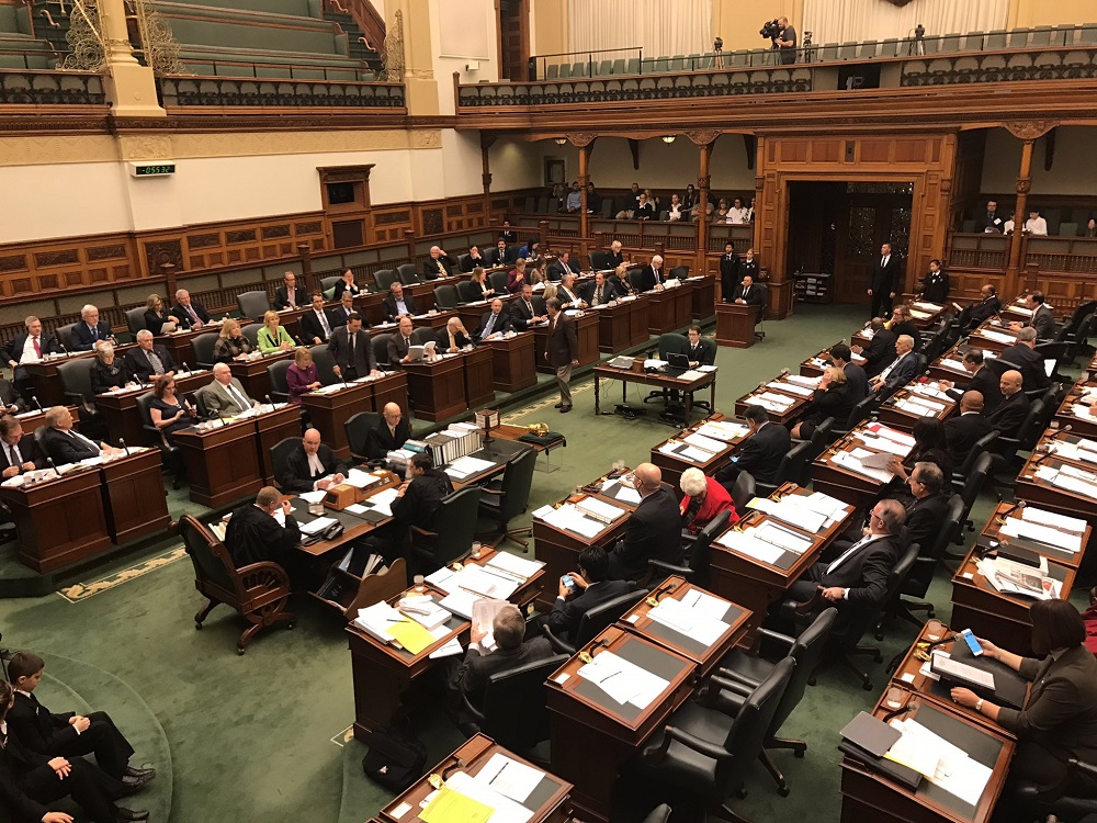 Photo des députées et députés de l'Ontario dans la chambre législative.